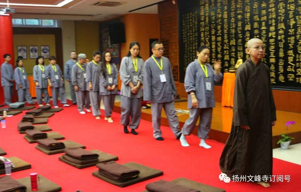 法师邀请大家关注自己的身体,每一步都把自己带回家。大家在行禅过程中都将都专注力放在自己的脚步和呼吸中。
