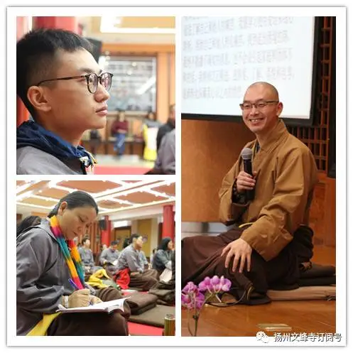 能度法师坐在般若堂内和禅营的家人们一起分享学习五项正念修行的心得,法师说的简洁易懂,大家立即心领神会,把随时拯救不幸福的五正念修习好好体会一番.